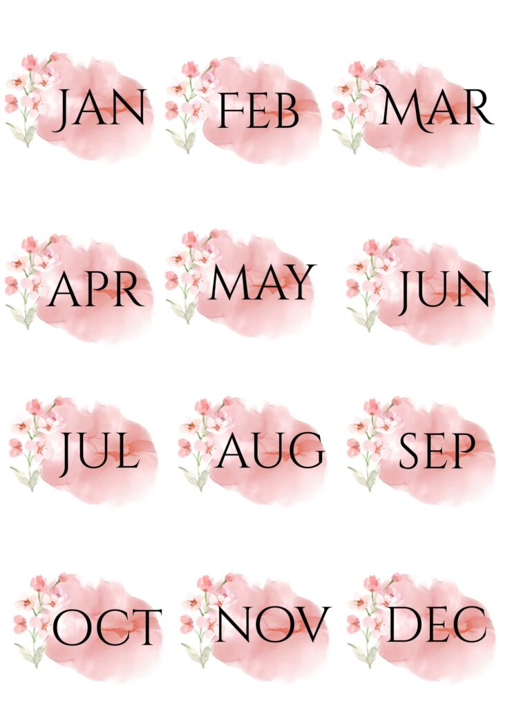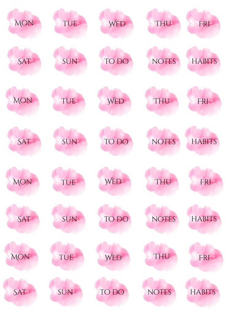 Please note: these files are originally scaled to fit A4 size paper – printing on Letter Size paper may slightly scale the design. Please make sure to adjust your print settings if needed. These designs can be printed on any paper type depending on the purpose you want to use them for, including sticker paper of your choice to create self-adhesive stickers.