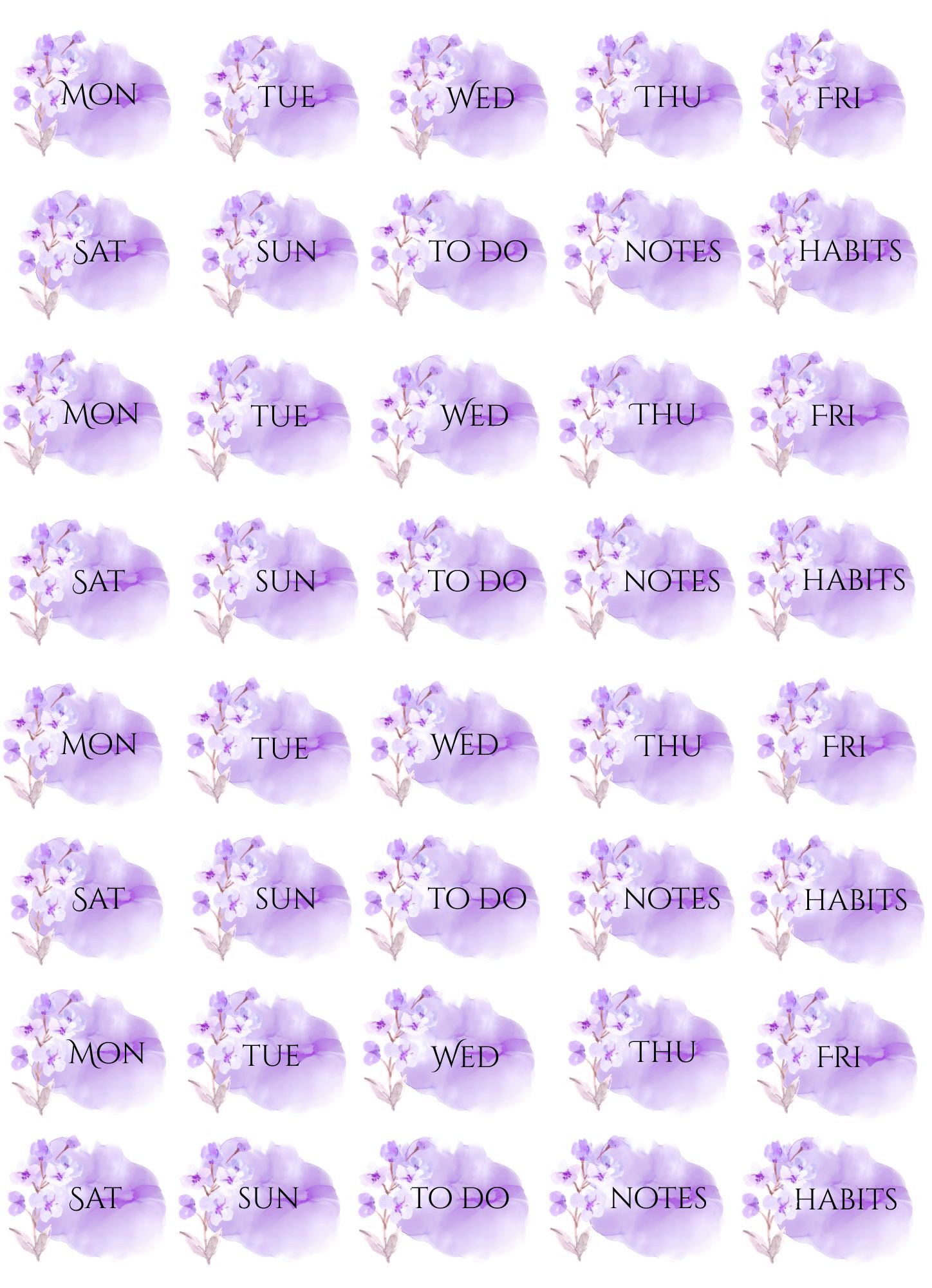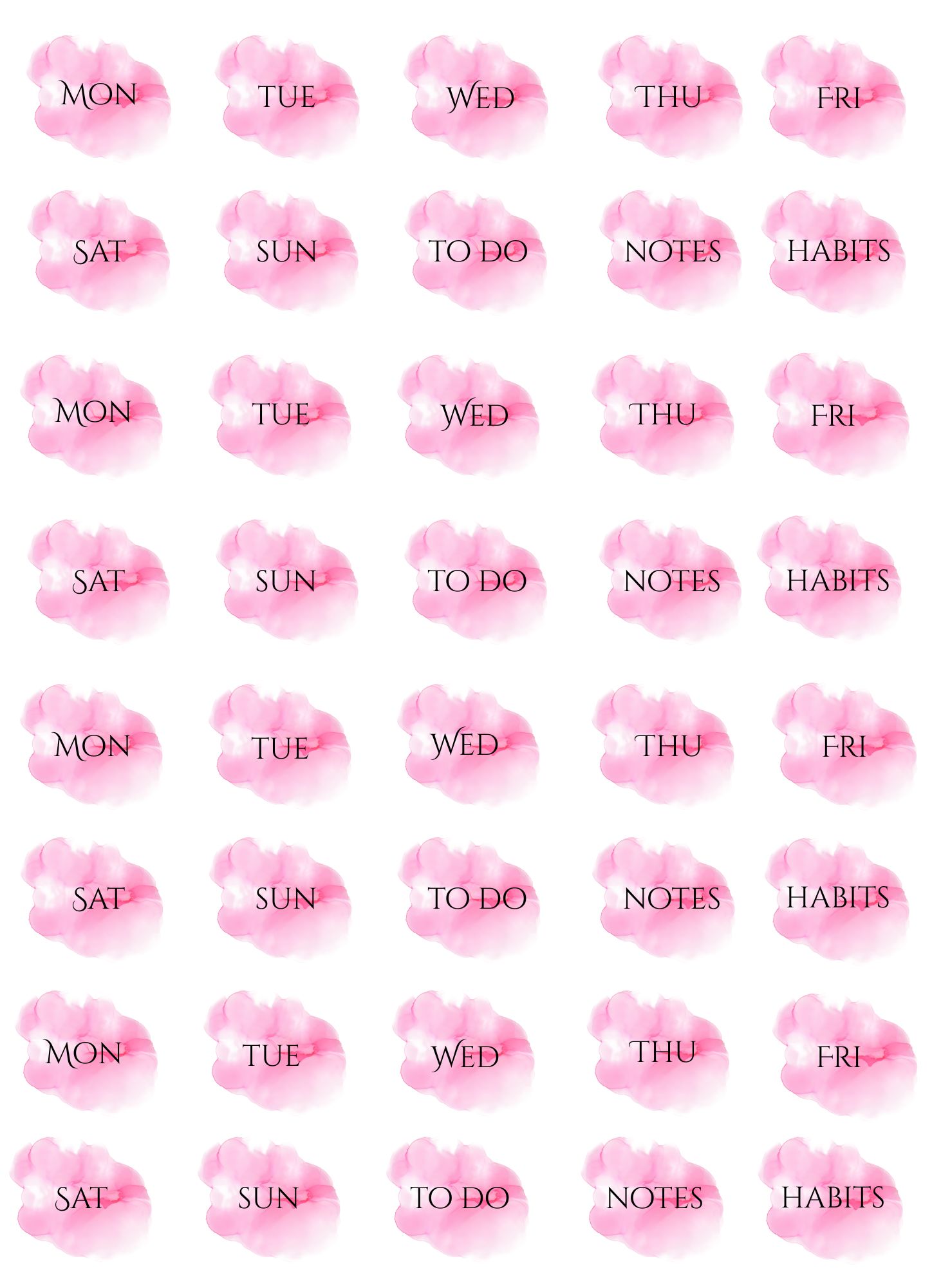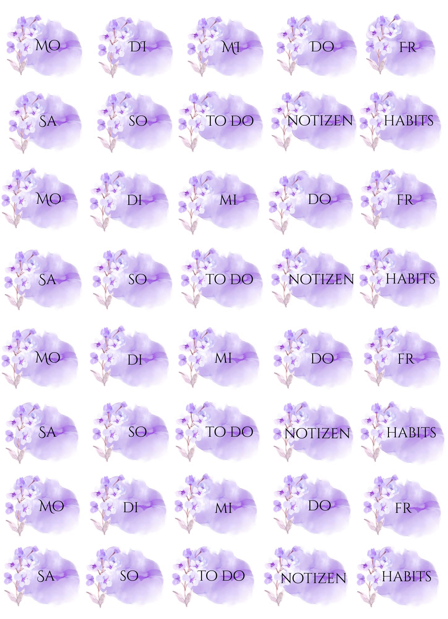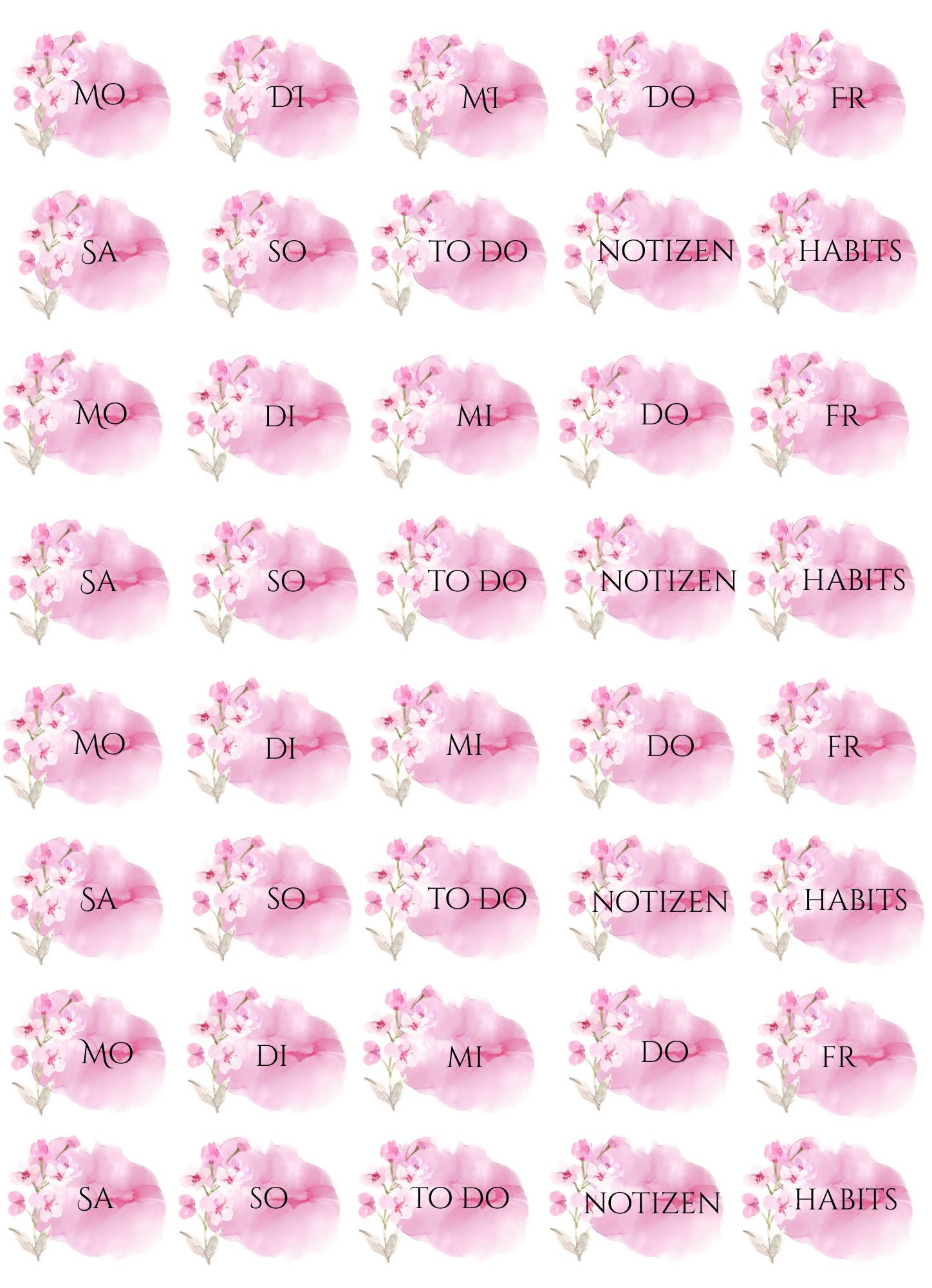Please note: these files are originally scaled to fit A4 size paper – printing on Letter Size paper may slightly scale the design. Please make sure to adjust your print settings if needed. These designs can be printed on any paper type depending on the purpose you want to use them for, including sticker paper of your choice to create self-adhesive stickers.