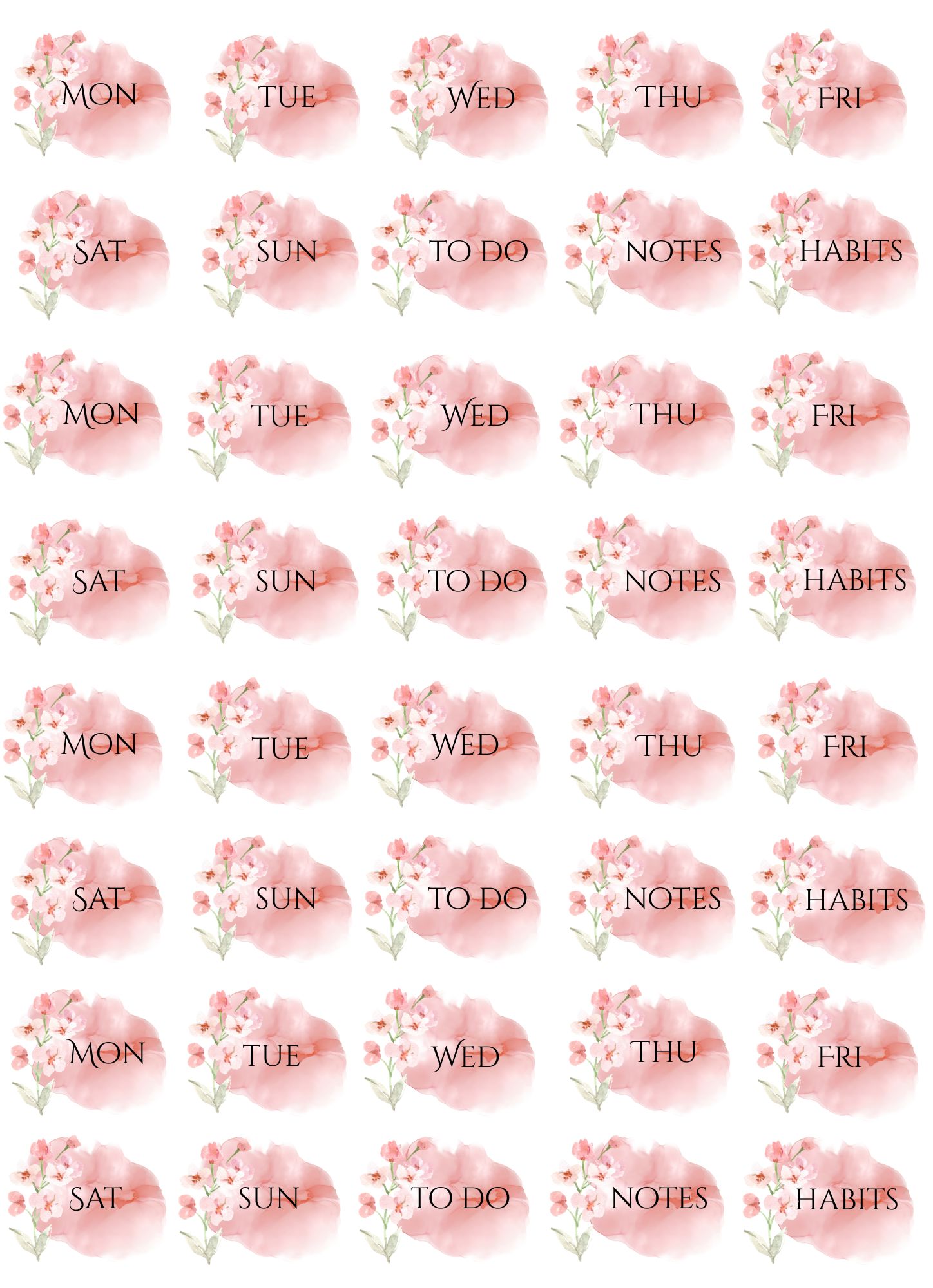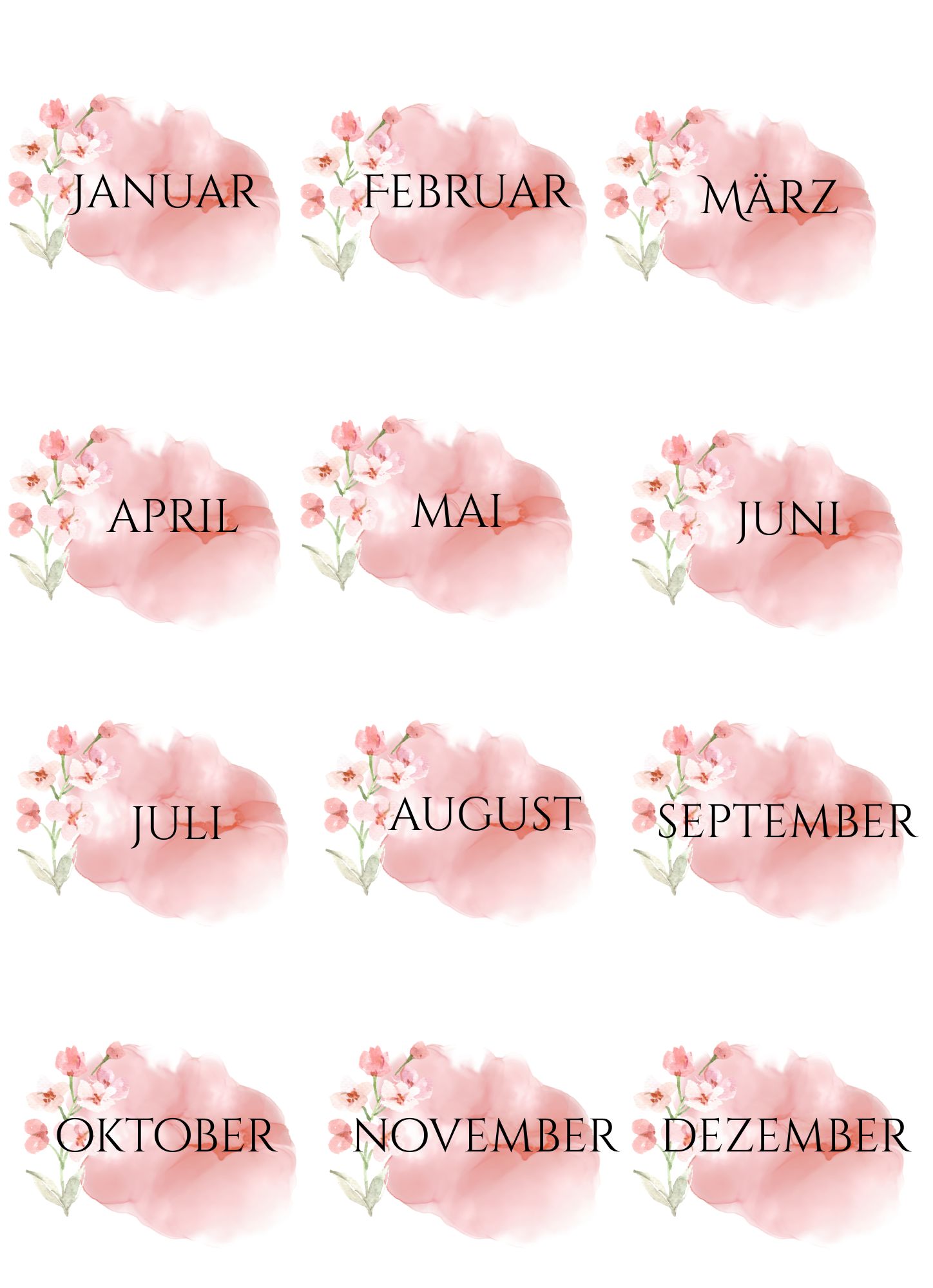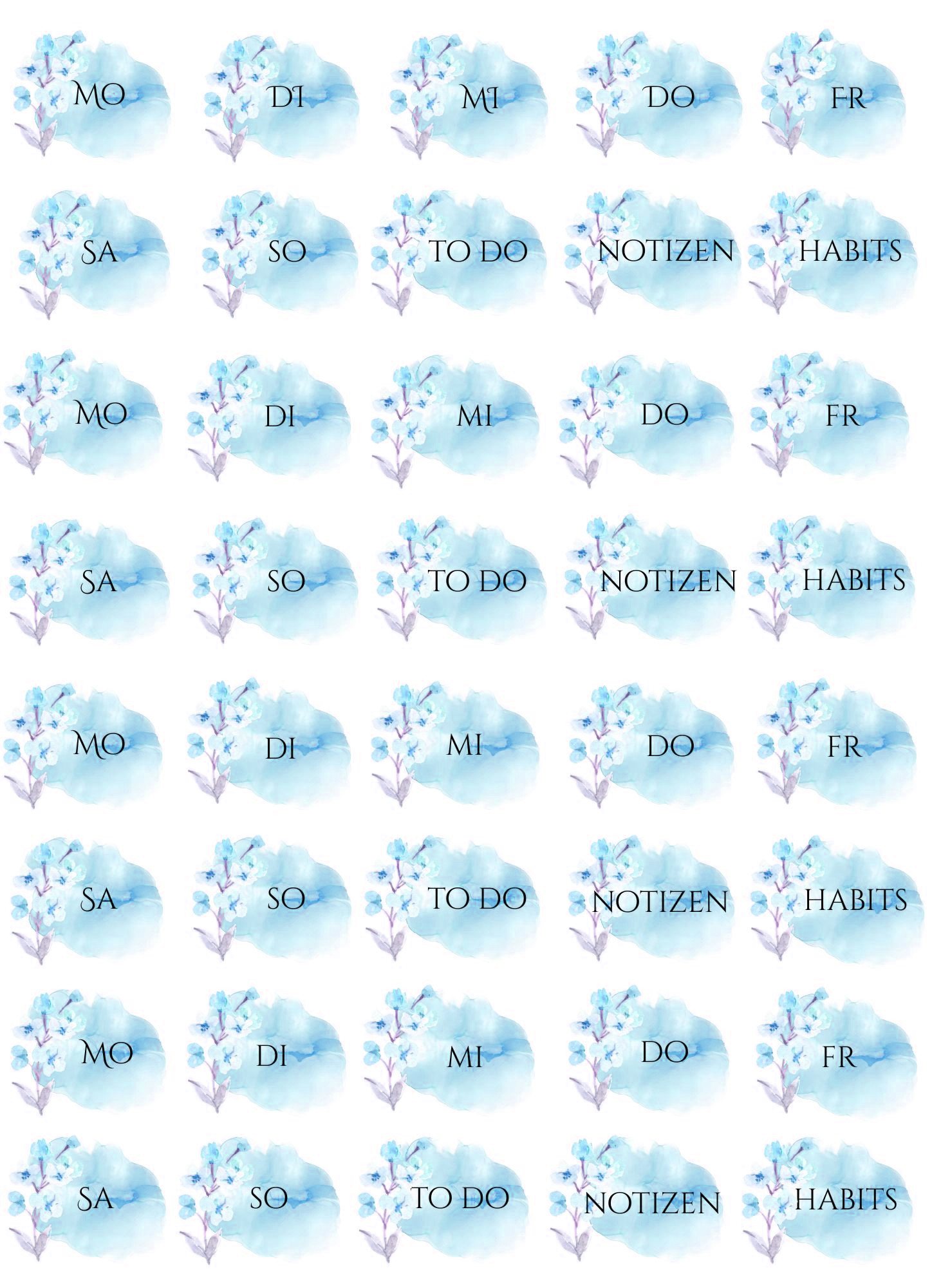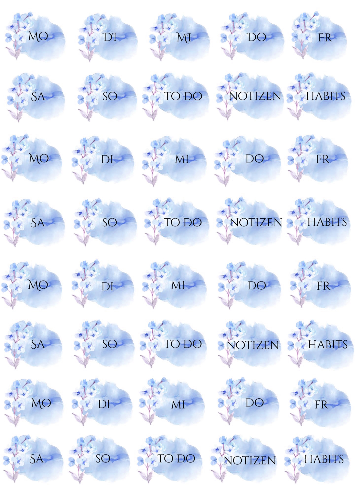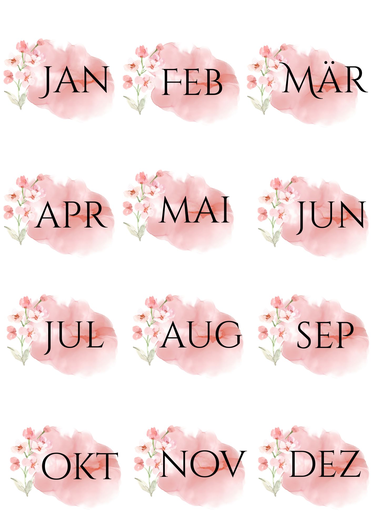 Please note: these files are originally scaled to fit A4 size paper – printing on Letter Size paper may slightly scale the design. Please make sure to adjust your print settings if needed. These designs can be printed on any paper type depending on the purpose you want to use them for, including sticker paper of your choice to create self-adhesive stickers.